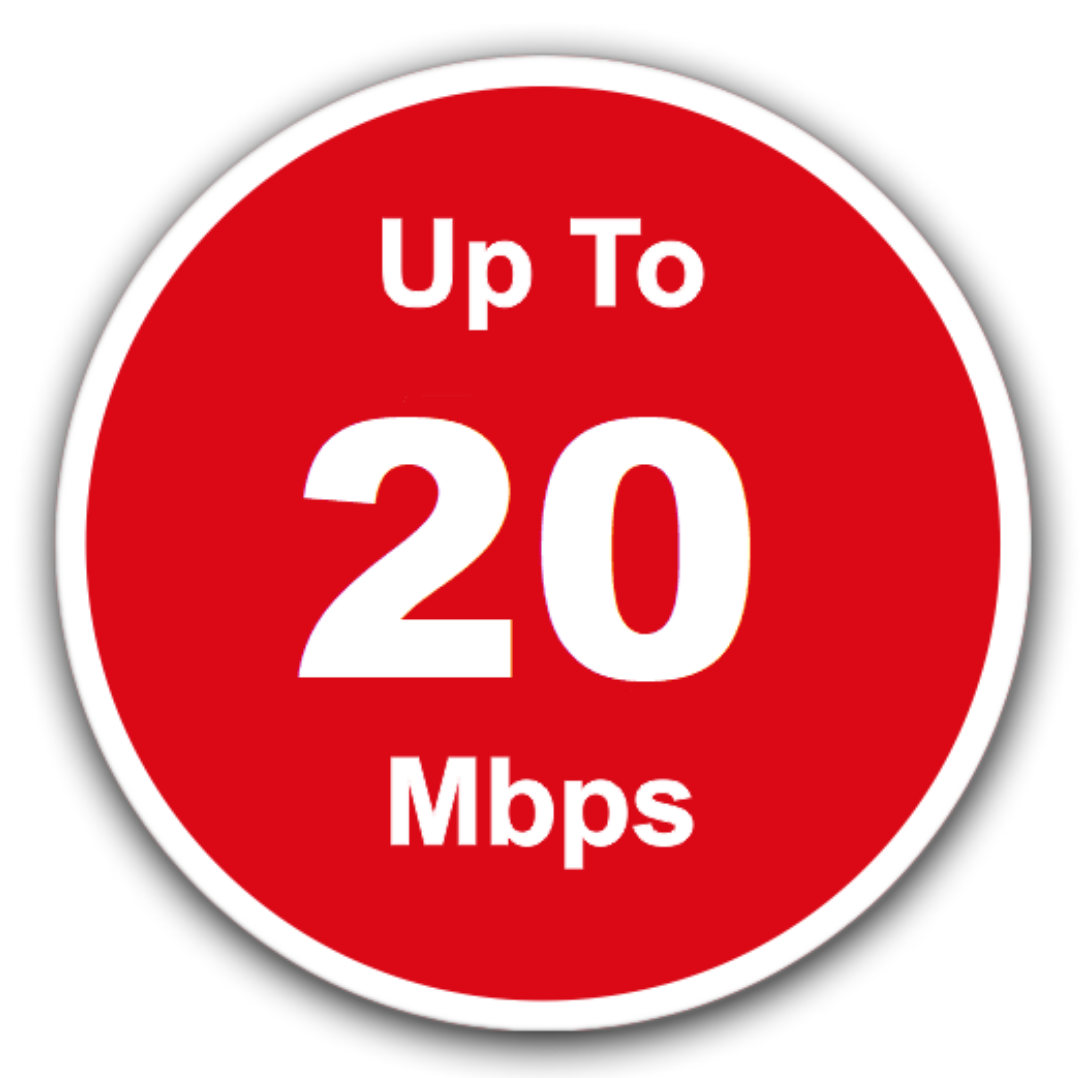 Kecepatan Internet upto 20 Mbps, Unlimited Kuota